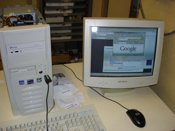 Le PC se connecte au modem et le contrôle à distance. A son niveau, il n'y a qu'un fil de quelques mètres entre les deux élements. L'ordinateur est directement connecté à Internet. Le haut débit est enfin là ! |