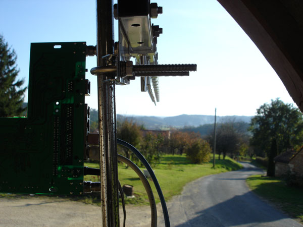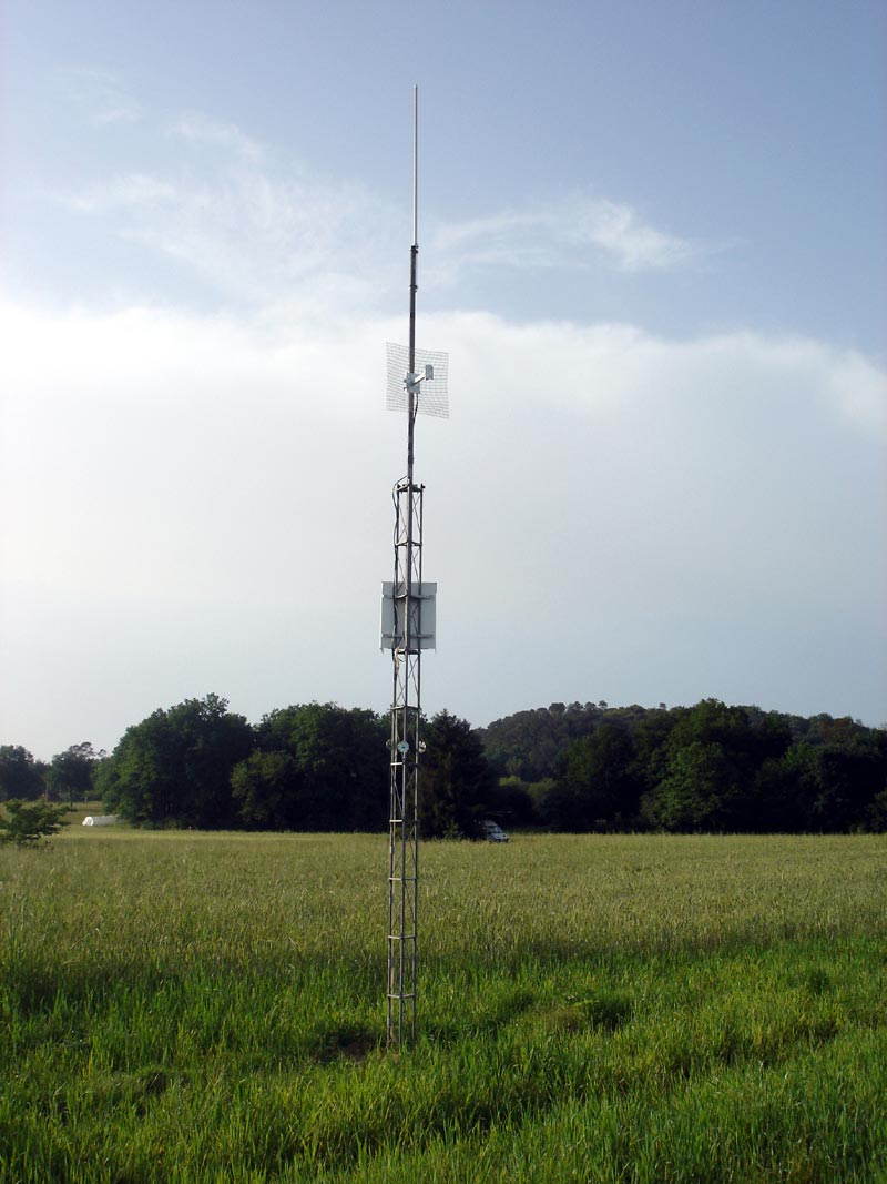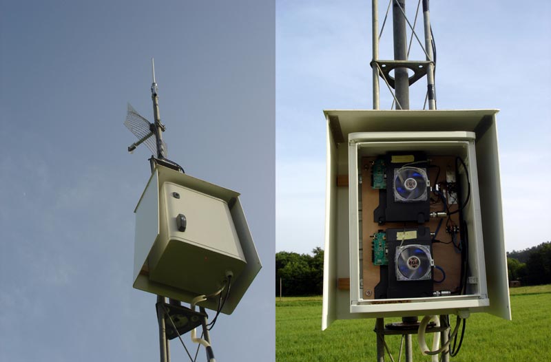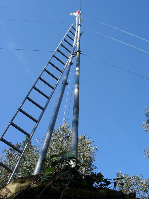 Mât de 9 Mètres sur le côteau. En dessous : Détail de l'armoire. |