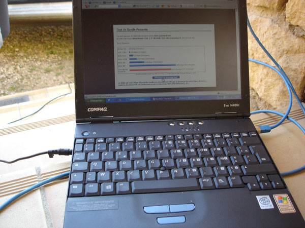 ![]() Les performances sont plus qu'honorables, le lien wifi n'amène aucune réduction de performances. Ici le modem ADSL a été poussé à 7.4 Mega débit réel - Un fichier de 700 Mo est télechargé en moins de 12 minutes. |