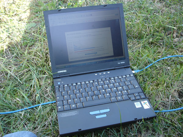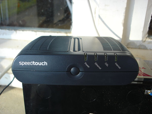 Le PC se connecte au modem et le contrôle à distance. A son niveau, il n'y a qu'un fil de quelques mètres entre les deux élements. L'ordinateur est directement connecté à Internet. Le haut débit est enfin là ! |