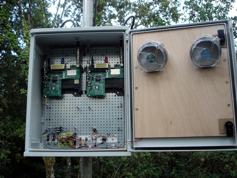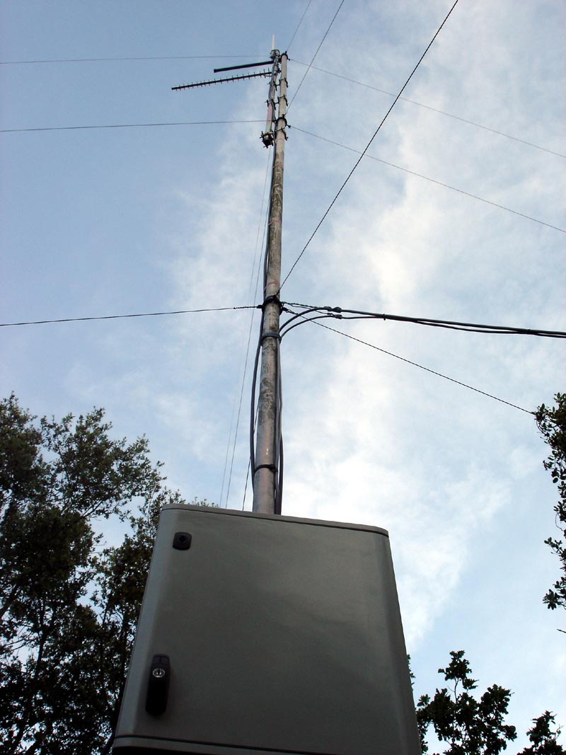 Mât de 9 Mètres sur le côteau. En dessous : Détail de l'armoire. |