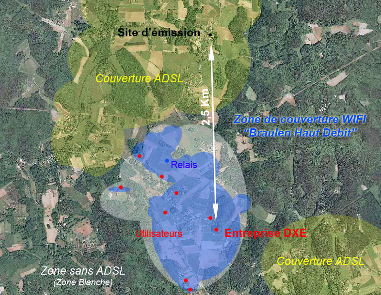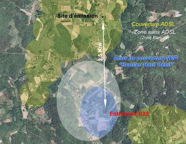 Situation géographique, couverture ADSL et WIFI avec Braulen Haut Débit. |